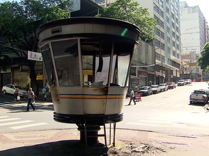 Uma guarita da Polícia Militar amanheceu queimada nesta quarta-feira (1º) no Centro de Belo Horizonte. A cabine fica no encontro da Rua dos Tamoios com a Rua dos Guaranis.